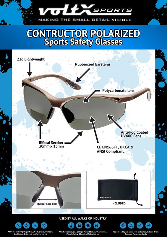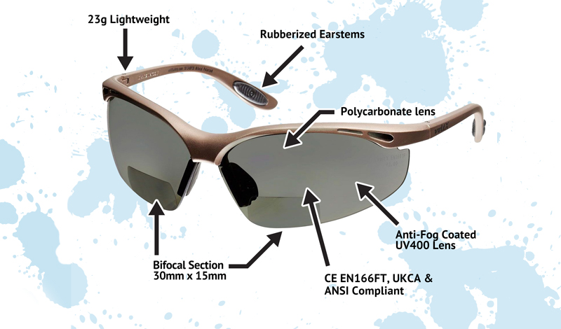 The only Polarized CE EN166f certified bifocal safety glasses currently available on the market. Great for drivers fishermen & marine industry workers.